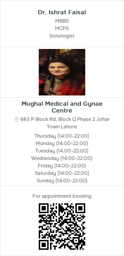 SonologistMughal Medical and Gynae Centre, House # 663 P Block Rd, Block Q Phase 2 Johar Town Lahore (1) Contact: 03334705867 , 03334705867