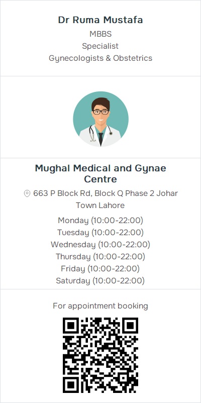 Gynecologists & ObstetricsMughal Medical and Gynae Centre, House # 663 P Block Rd, Block Q Phase 2 Johar Town Lahore Contact: 03334705867 , 03334705867