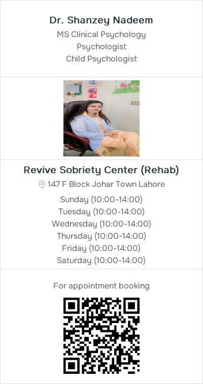 Child PsychologistRevive Sobriety Center (Rehab), 147 F Block Johar Town Lahore (1) Contact: 04232186156 , 03405777769