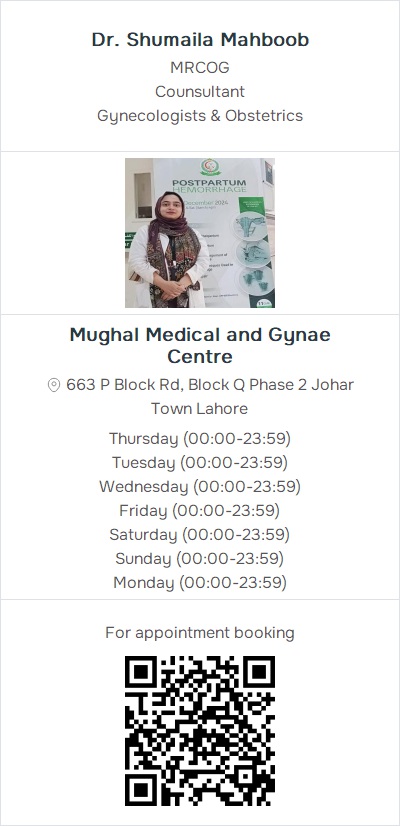 Gynecologists & ObstetricsMughal Medical and Gynae Centre, 663 P Block Rd, Block Q Phase 2 Johar Town Lahore (1) Contact: 03334705867 , 03334705867