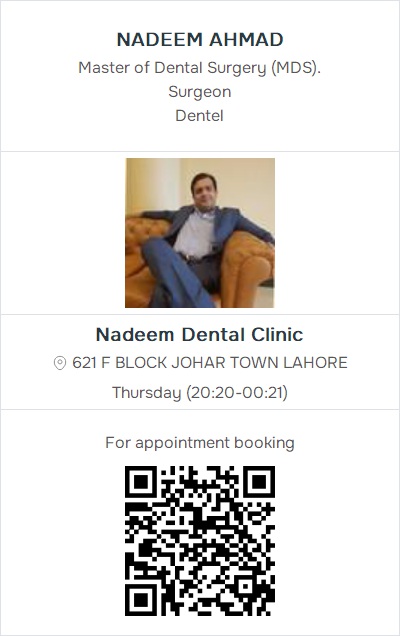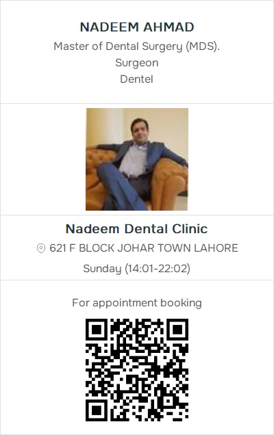 DentelNadeem Dental Clinic, 621 F BLOCK JOHAR TOWN LAHORE (ROOM 4) Contact: 03004512258 , 03004512258
